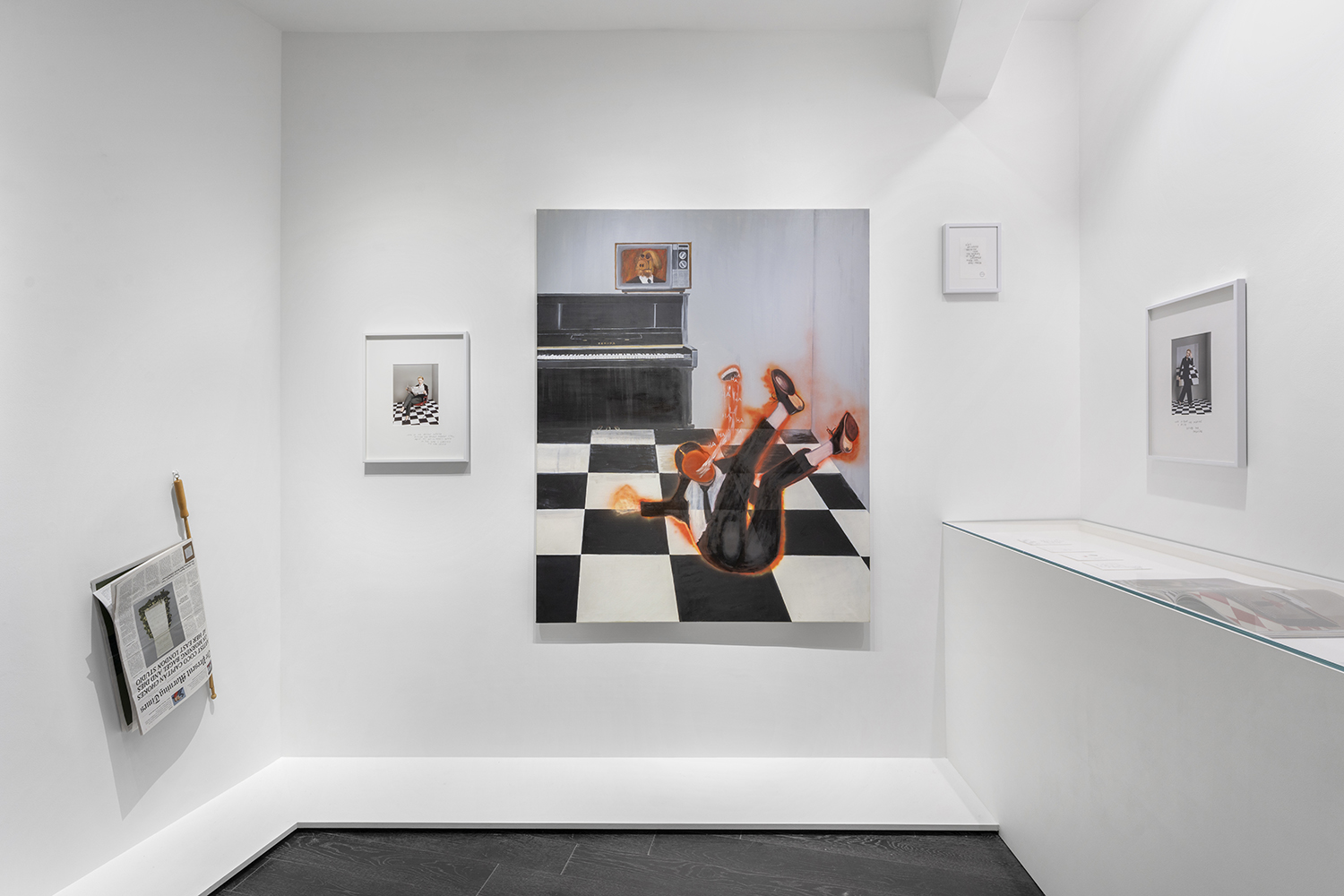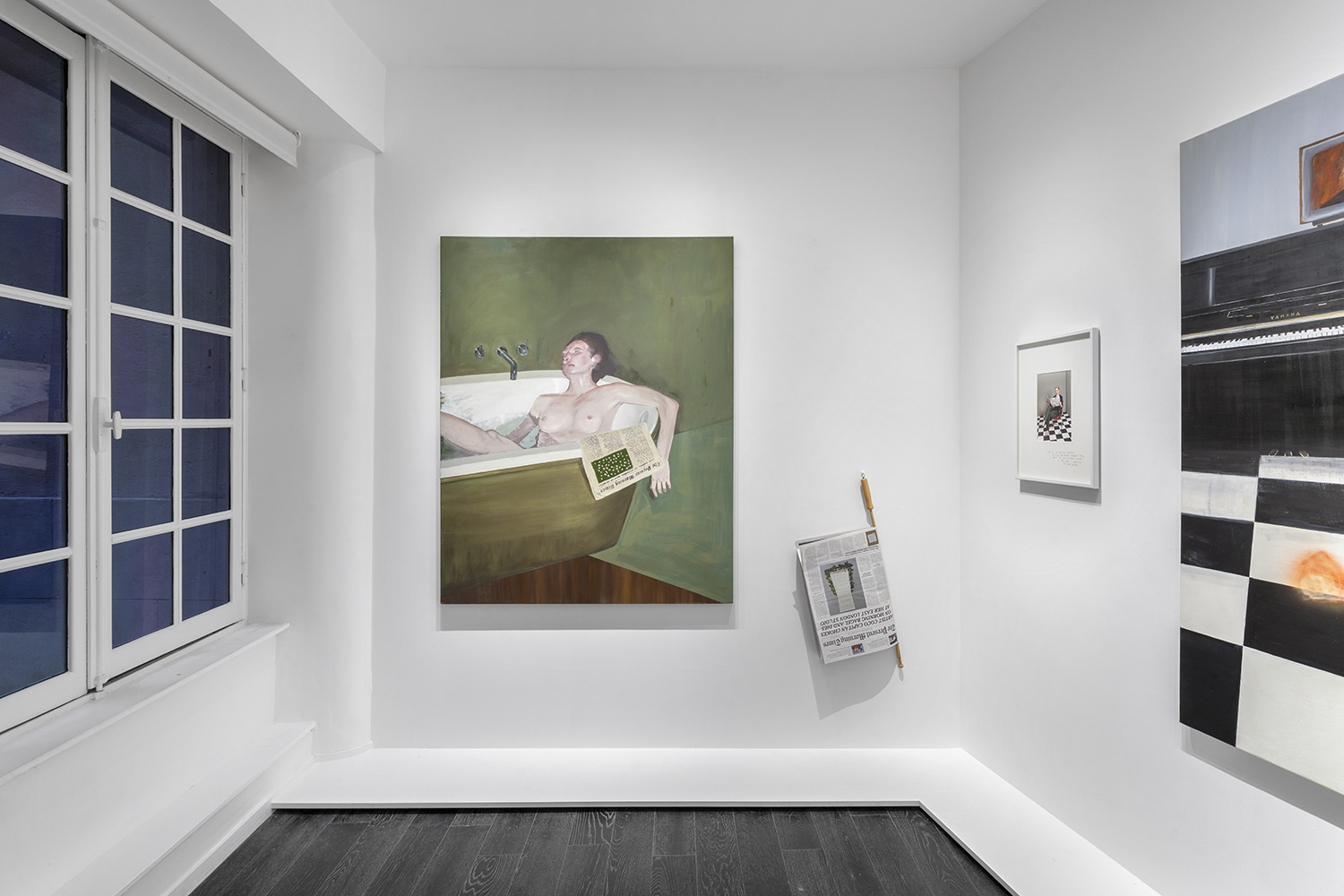 Coco Capitán knows the press well, and it is in this context that she photographed for a US magazine the actress Cate Blanchett reading her Present Morning Times. The black-and-white checkerboard floor emanates from another painting, A School Day Afternoon (2025), in which the artist evokes her childhood in southern Spain, when, in the family home with an identical floor, television and her younger sister’s laughter offered tempting alternatives to serious piano lessons. A small handwritten note reminds us of this.